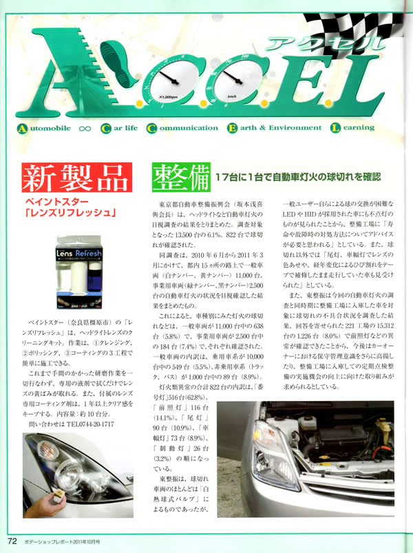 | 新製品紹介に ペイントスター 「レンズリフレッシュ」が掲載されました。 |