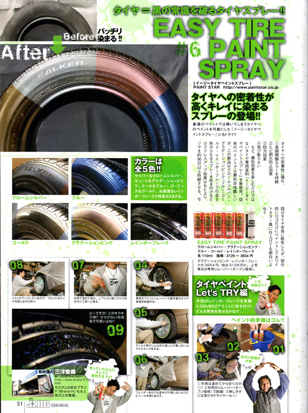 | タイヤ専用ペイント、イージータイヤペイントスプレーが紹介されました。 |