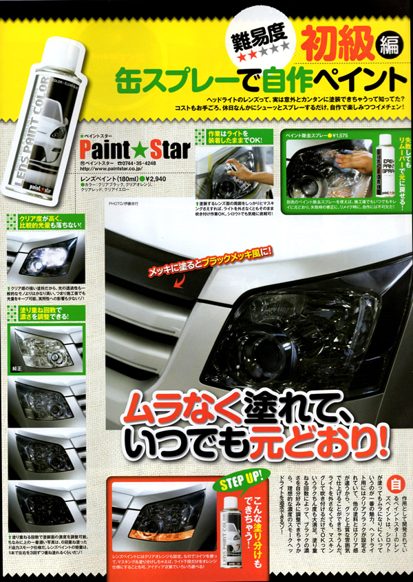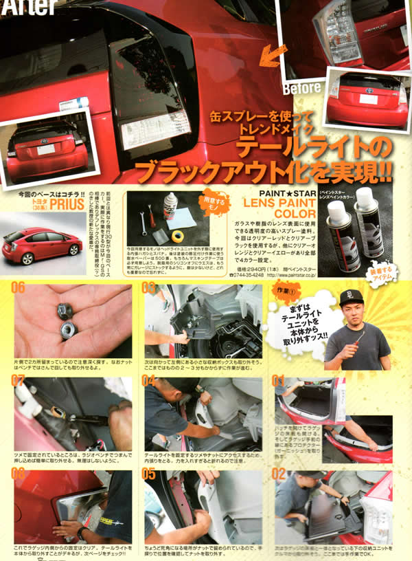 | Jラグ 5周年記念 ちょいワザDIYにペイントスター レンズペイントカラーを使用してのテールライトのブラックアウト化作業が掲載されました。 |